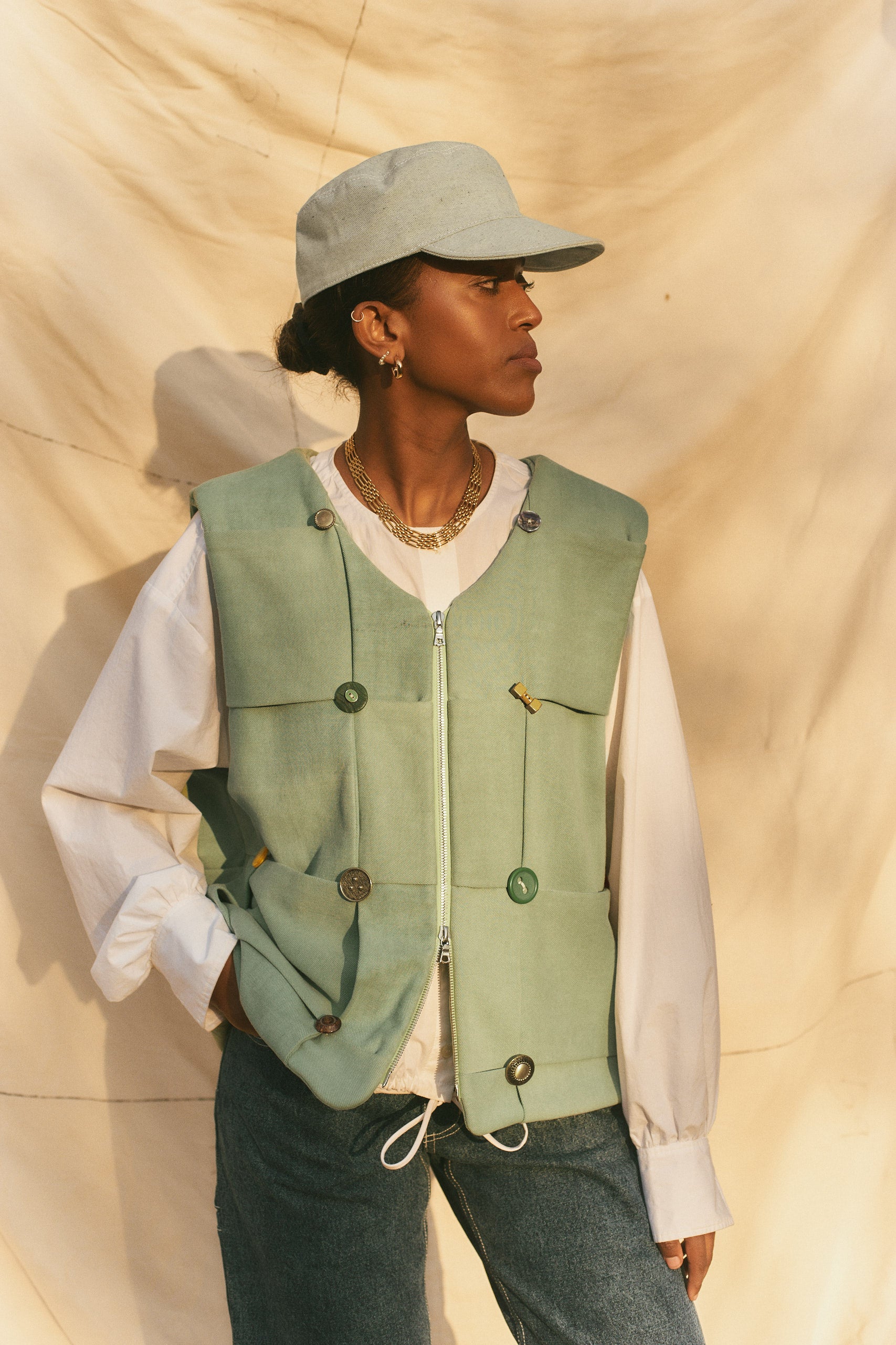 The Lola Button Vest in Celadon size 2 SOLD OUT